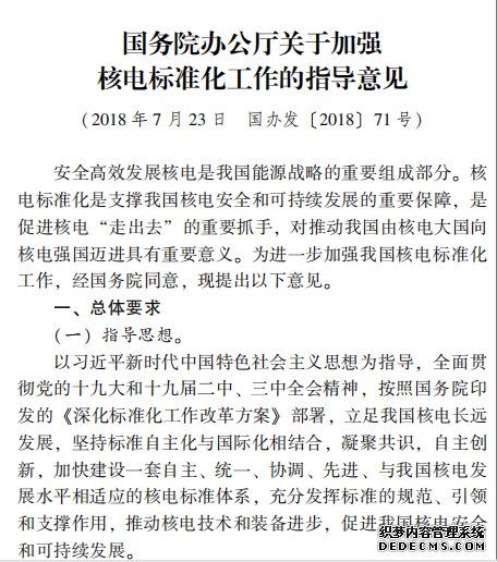 國務(wù)院辦公廳關(guān)于加強(qiáng) 核電標(biāo)準(zhǔn)化工作的指導(dǎo)意