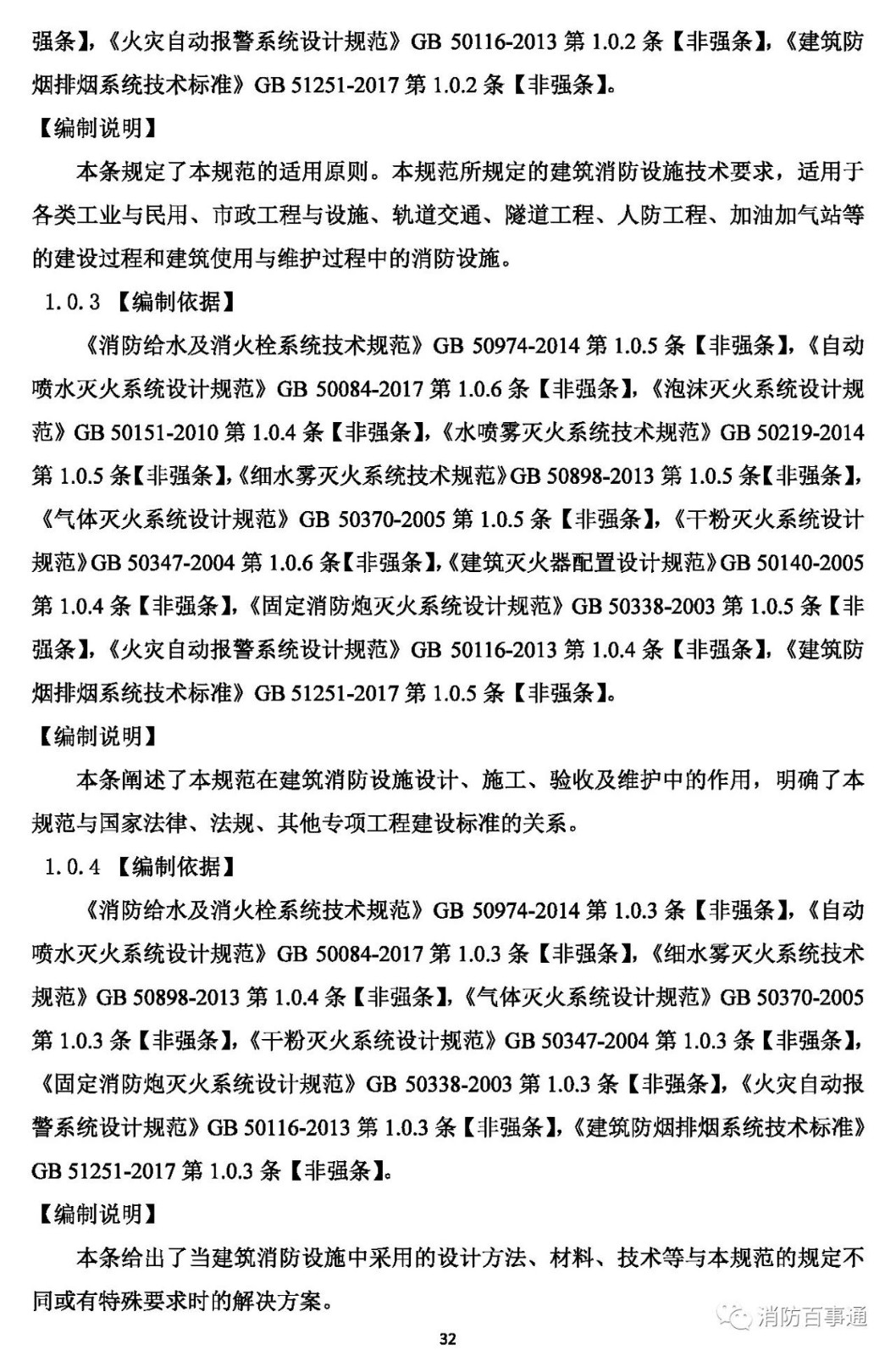1.0.5 執(zhí)行本規(guī)范必須同時(shí)加強(qiáng)工程質(zhì)量安全管理,嚴(yán)格規(guī)范的實(shí)施監(jiān)督。建筑在規(guī)劃、設(shè)計(jì)、施工和使用中的消防設(shè)施,除應(yīng)遵守本規(guī)范外,尚應(yīng)符合國家現(xiàn)行有關(guān)規(guī)范的規(guī)定。