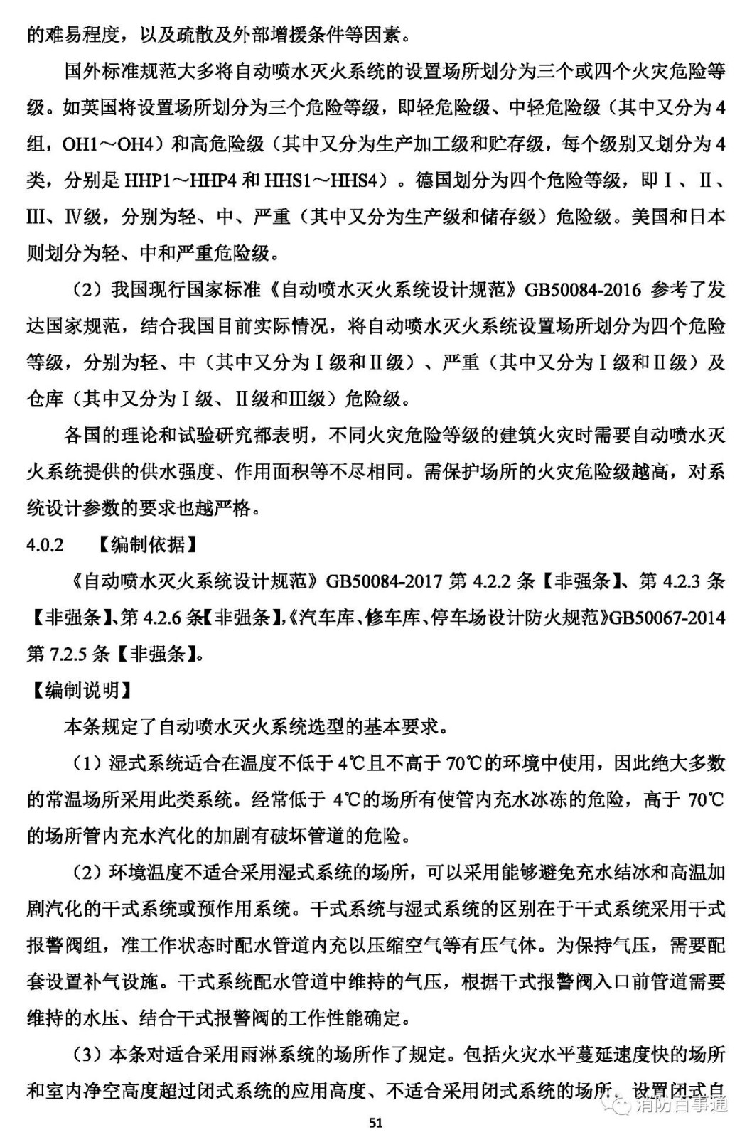 4.0.1 工業(yè)和民用建筑內(nèi)的自動(dòng)噴水滅火系統(tǒng),其噴水強(qiáng)度、作用面積、噴頭工作壓力、噴頭間距等參數(shù)應(yīng)與其火災(zāi)危險(xiǎn)等級(jí)、室內(nèi)凈空高度等相適應(yīng)。