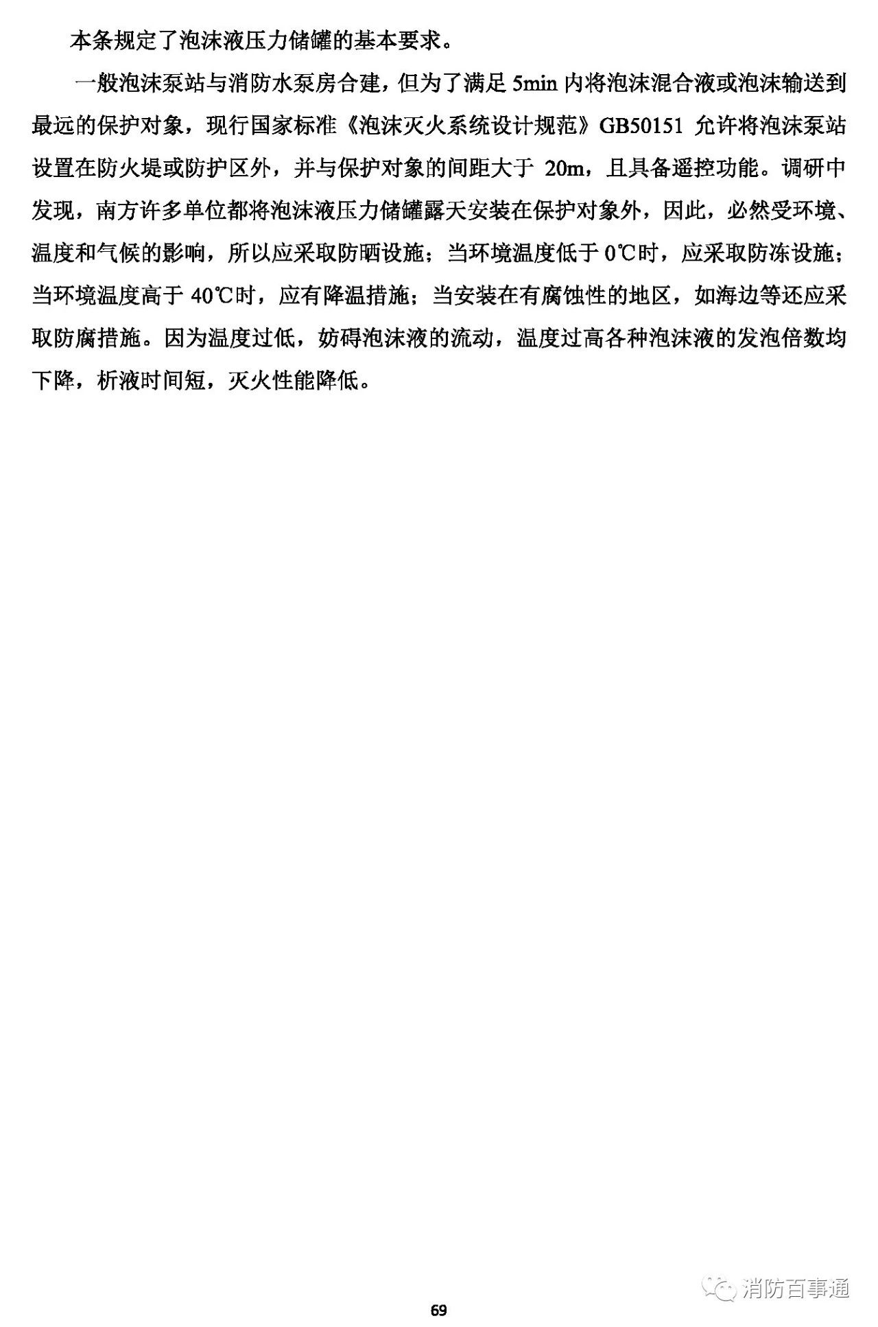 5 非吸氣型噴射裝置的泡沫-水噴淋系統(tǒng)、泡沫槍系統(tǒng)、泡沫炮系統(tǒng),應(yīng)使用水成膜或成膜氟蛋白泡沫液;