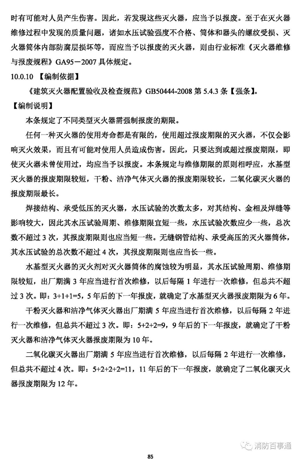 10.0.8 滅火器應(yīng)按規(guī)定定期維護(hù)、維修和報(bào)廢。滅火器報(bào)廢后,應(yīng)按照等效替代的原則進(jìn)行更換。