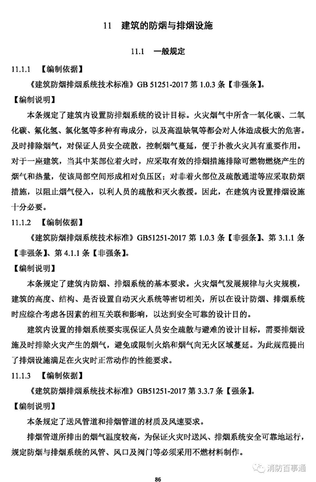 11.1.1 建筑內(nèi)的防煙和排煙系統(tǒng)應(yīng)能有效控制建筑內(nèi)火災(zāi)煙氣的流動(dòng)與蔓延,保障建筑內(nèi)的人員安全疏散,并應(yīng)有利于滅火救援。