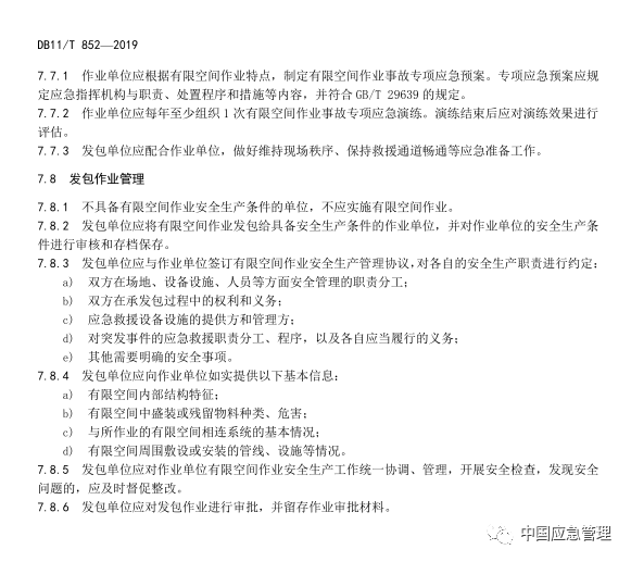 北京市 《有限空間作業(yè)安全技術(shù)規(guī)范》 DB11T852-2019