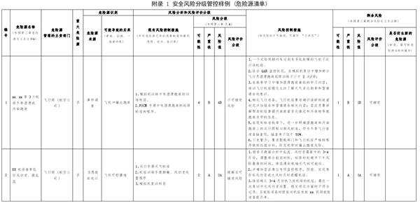 民航生產經營單位應依據危險源識別和安全風險評價分級結果,按“分級管控”原則建立健全風險管控工作機制。
