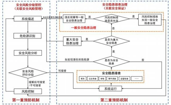如發(fā)現重大安全隱患,應按照8.3的要求進行治理;如發(fā)現一般安全隱患,應當按照8.4的要求進行治理;排查中如發(fā)現潛在的危險源,應回溯到“7.2系統描述”進行定位和梳理,適時啟動安全風險分級管控流程識別危險源并管控相關風險;如評估發(fā)現的問題不屬于上述任何一類,可選擇是否改進后,回到系統運行環(huán)節(jié)。