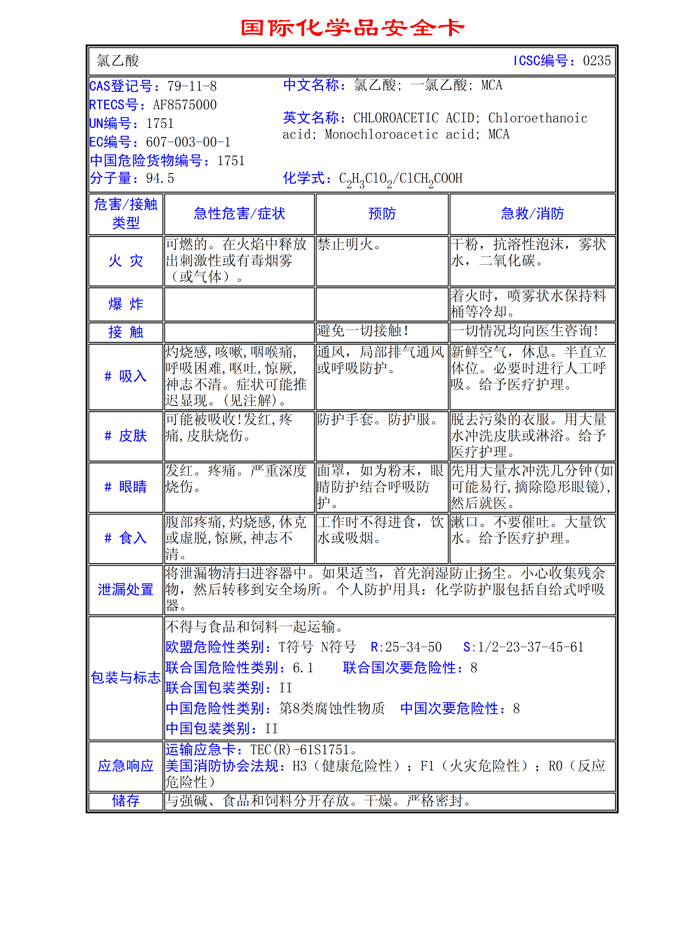 氯乙酸MSDS