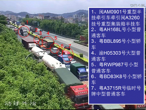 此次事故造成粵BBL895號小型轎車駕駛員江文洪及其車上乘客劉偉杰、江文靜、黃意娣四人當(dāng)場死亡,七車不同程度損壞,事故直接經(jīng)濟(jì)損失約413.5萬元。