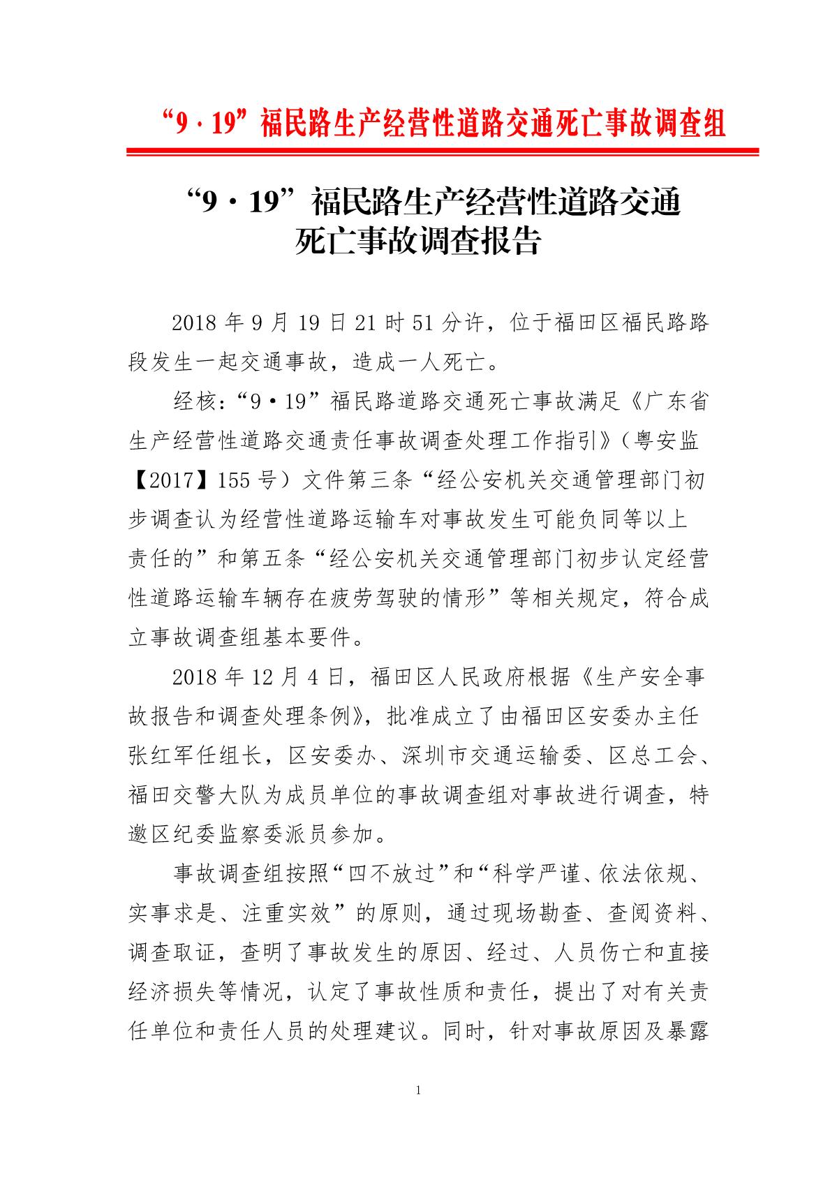 “9.19”福民路生產(chǎn)經(jīng)營性道路交通死亡事故調(diào)查報(bào)告