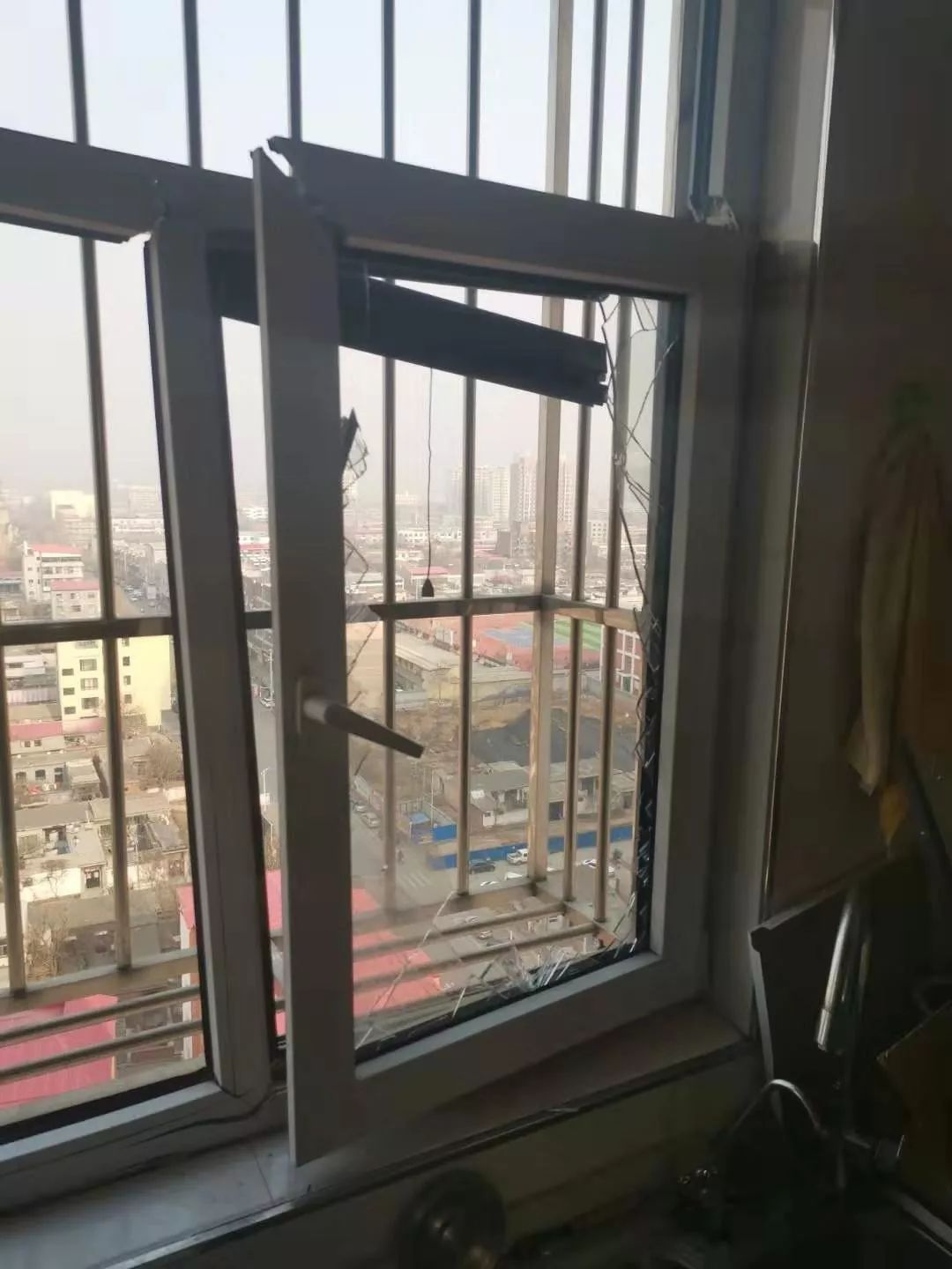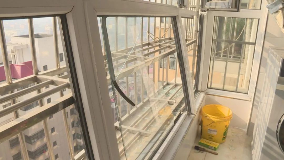 這是贊皇縣翰林官邸小區(qū)11號(hào)樓前監(jiān)控視頻拍攝的畫(huà)面。從監(jiān)控上看,樓上住戶玻璃破損有大量碎玻璃掉落到樓下。記者了解到這些碎玻璃是從這棟樓21層一戶掉落下來(lái)的。之后,記者來(lái)到這家住戶屋內(nèi)。