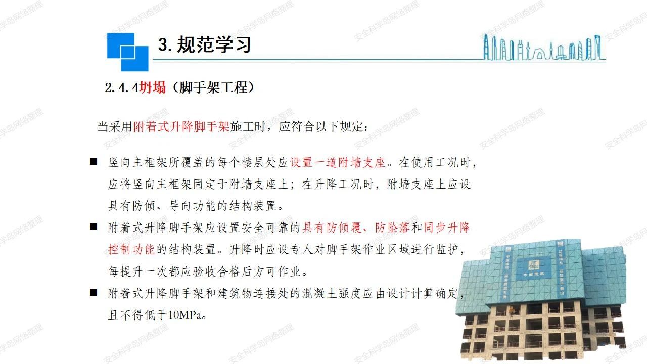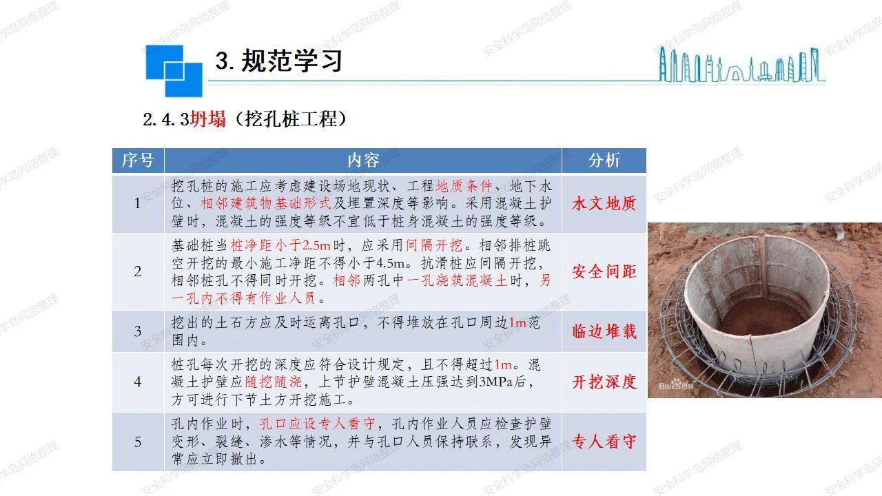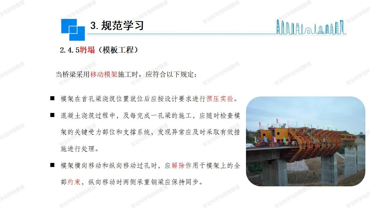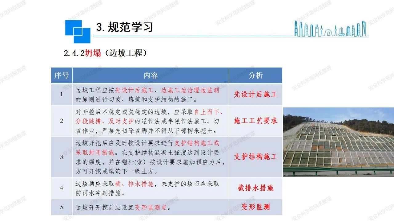 那么,坍塌事故發(fā)生的原因何在? (1)工程結(jié)構(gòu)設(shè)計(jì)不合理或計(jì)算失誤。 (2)施工前沒有編制切實(shí)可行的施工組織設(shè)計(jì)和專項(xiàng)施工方案,未做具體技術(shù)安全措施交底,特定施工項(xiàng)目未經(jīng)專家評(píng)審論證。 (3)腳手架、模板支撐、起重設(shè)備結(jié)構(gòu)設(shè)計(jì)不合理或計(jì)算失誤。 (4)建筑物結(jié)構(gòu)質(zhì)量低劣,安全性能差,地基不穩(wěn)定,不均勻沉降。 (5)建筑物結(jié)構(gòu)支撐連接(焊接)不牢固,超載、外力沖擊或嚴(yán)重偏心載荷造成失穩(wěn)等。 (6)腳手架及高大模板支架架體結(jié)構(gòu)不符合設(shè)計(jì)與規(guī)范要求,整體安全穩(wěn)定性差、超載或嚴(yán)重偏心荷載,遇外力沖擊或振動(dòng),不按程序拆除架體等因素造成失穩(wěn)等。 (7)基坑、土石方挖土?xí)r土壁不按規(guī)定留設(shè)邊坡(甚至負(fù)坡度),缺乏支護(hù)或支護(hù)不良,土質(zhì)不良或出現(xiàn)地下水、地表水的滲透,土壁經(jīng)不起重載側(cè)壓力或遇外力振動(dòng)、沖擊等因素造成土壁失穩(wěn)滑坡坍塌。 (8)起重設(shè)備技術(shù)安全性能差,結(jié)構(gòu)強(qiáng)度不夠,安全防護(hù)裝置不完善,垂直起重機(jī)與建筑物拉結(jié)差,出現(xiàn)超載、碰撞、升降過度或違章操作等原因,造成起重設(shè)備倒塌。 (9)現(xiàn)場作業(yè)環(huán)境不良,安全防護(hù)設(shè)施缺乏。 (10)施工現(xiàn)場管理松弛,各項(xiàng)質(zhì)量、安全管理制度流于形式。 (11)片面追求經(jīng)濟(jì)利益,偷工減料,施工質(zhì)量差。 (12)施工隊(duì)伍素質(zhì)差,不執(zhí)行法規(guī)、標(biāo)準(zhǔn),違章指揮、違章作業(yè),思想上存在盲目性、冒險(xiǎn)性、隨意性。 如何預(yù)防坍塌事故? (1)根據(jù)設(shè)計(jì)與規(guī)范要求,認(rèn)真編制施工組織設(shè)計(jì)和專項(xiàng)施工技術(shù)方案、應(yīng)急預(yù)案,做好特定施工項(xiàng)目專家評(píng)審論證及技術(shù)安全交底工作。 (2)支架、腳手架等搭設(shè)完成后應(yīng)組織相關(guān)部門驗(yàn)收。支架還應(yīng)按方案要求進(jìn)行堆載預(yù)壓。 (3)嚴(yán)格控制模板支架、腳手架等承受的荷載,模板、腳手架及其支撐體系的施工荷載應(yīng)做到均勻分布,并不得超過設(shè)計(jì)要求。嚴(yán)禁超載、對(duì)構(gòu)筑物進(jìn)行外力沖擊或偏心載荷。 (4)基坑、土石方挖土?xí)r土壁按規(guī)定留設(shè)邊坡,嚴(yán)格按照設(shè)計(jì)坡度進(jìn)行放坡開挖,進(jìn)行有效支護(hù)和排水,并設(shè)置專人對(duì)邊坡穩(wěn)定性進(jìn)行檢測?;討?yīng)基坑頂邊緣1m范圍內(nèi)禁止堆放材料。 (5)加強(qiáng)起重設(shè)備的采購管理,嚴(yán)禁使用不合格的起重設(shè)備,并定期進(jìn)行檢測,確保各項(xiàng)性能和安全防護(hù)裝置良好;加強(qiáng)起重設(shè)備的安裝、拆除管理;加強(qiáng)起重設(shè)備的使用管理,嚴(yán)禁超載、碰撞或違章操作;加強(qiáng)對(duì)起重設(shè)備操作人員、指揮人員、安拆人員的安全教育培訓(xùn),考核合格后持證上崗。 (6)加強(qiáng)施工現(xiàn)場管理,設(shè)置有效安全防護(hù)設(shè)施。 (7)加強(qiáng)對(duì)從業(yè)人員的培訓(xùn)教育,提高隊(duì)伍素質(zhì),強(qiáng)化質(zhì)量、安全意識(shí)。 (8)強(qiáng)化工程質(zhì)量報(bào)驗(yàn)和檢驗(yàn)、簽證制度,不經(jīng)檢驗(yàn)合格,不準(zhǔn)進(jìn)行下道工序施工。 (9)發(fā)現(xiàn)坍塌事故的險(xiǎn)情,要認(rèn)真分析原因,積極研究提出排除隱患的整改措施,并監(jiān)督執(zhí)行。