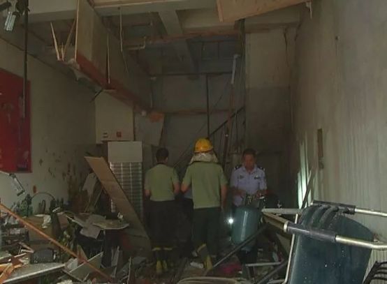 事故現(xiàn)場(chǎng)一片狼藉,飯店屋內(nèi)的東西散落在人行便道上,馬路上也散落著許多的玻璃碎屑...