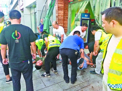此時(shí),相鄰一家快餐店的老板娘雍女士正在倒垃圾,見(jiàn)狀趕緊喊來(lái)兩名伙計(jì),和城管隊(duì)員們一起將店內(nèi)的一名白衣女子和一名綠衣男子,抬到店外陰涼通風(fēng)處。雍女士用手指猛掐白衣女子的人中,但始終沒(méi)有反應(yīng)。