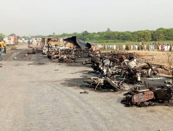 巴基斯坦油罐車(chē)大火123人死,婦女孩童收集溢出石油時(shí)爆炸