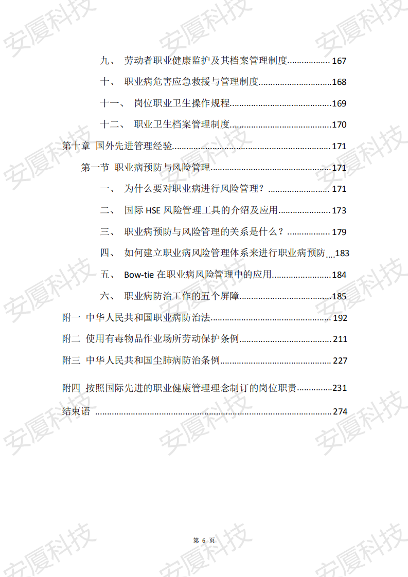 該書于2020年5月1日開始構(gòu)思著手創(chuàng)作,由安廈系統(tǒng)科技成都有限責(zé)任公司委托曲范輝、鄒異林、溫薇、高志堅(jiān)、王希、朱威林進(jìn)行編著,各方堅(jiān)持勤勉努力誠實(shí)信用的原則,分別負(fù)責(zé)的各自章節(jié)的書籍編著工作,本書針對企業(yè)和個(gè)人的職業(yè)健康培訓(xùn)。內(nèi)容涉及職業(yè)危害識(shí)別、常見行業(yè)的職業(yè)危害、職業(yè)危害檢測、管理制度、部分現(xiàn)行的法律法規(guī)和標(biāo)準(zhǔn)等等,借鑒國際先進(jìn)的職業(yè)健康管理理念和最佳實(shí)踐進(jìn)行重新整理和創(chuàng)造。以從物理因素、化學(xué)因素方面進(jìn)行講解如何防護(hù)職業(yè)病的發(fā)生。